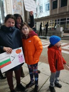 От площада хората се отбиха пред централата на ГЕРБ на ул. „Иван Гюзелев”, после направиха шествие по ул. „Радецка”. Мирно, с децата си.